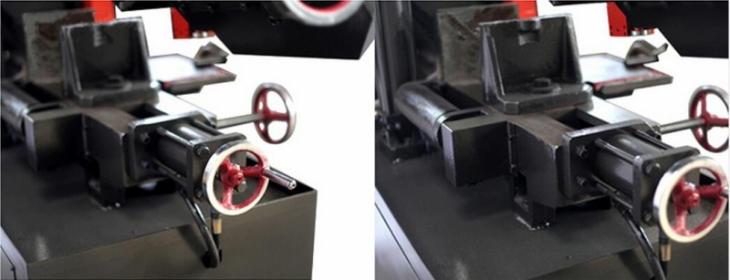 4、鋸床配置電動清屑裝置,由主電機帶動鋼絲輪刷轉(zhuǎn)動,方便鋸條屑沫的