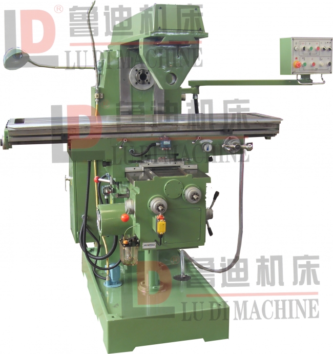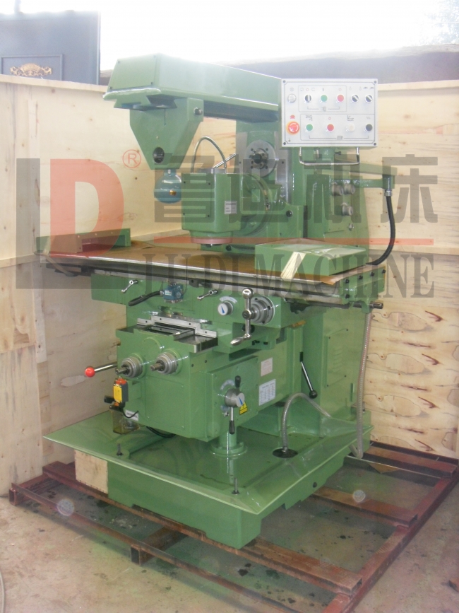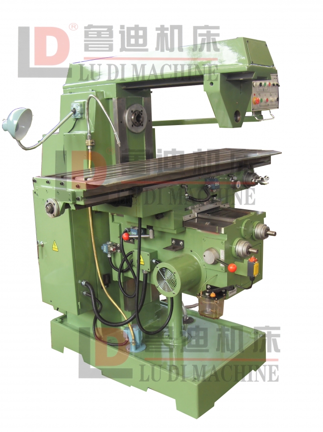 立臥兩用,工作臺(tái)三相自動(dòng)進(jìn)給,電磁離合快速進(jìn)給,工作臺(tái)旋轉(zhuǎn)45度,配置立銑頭。