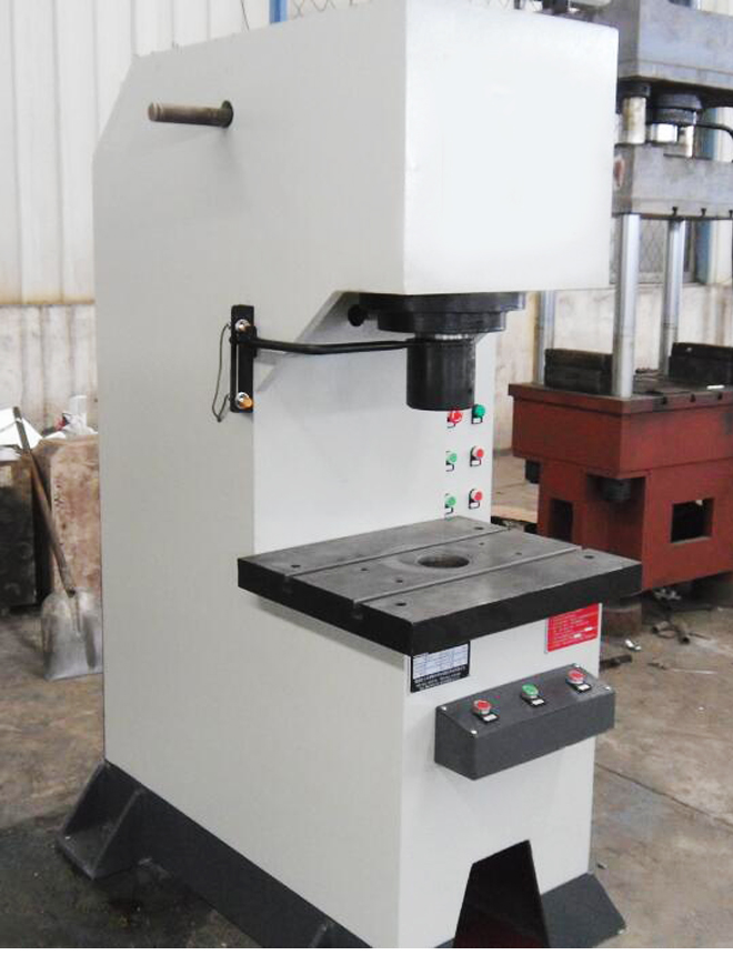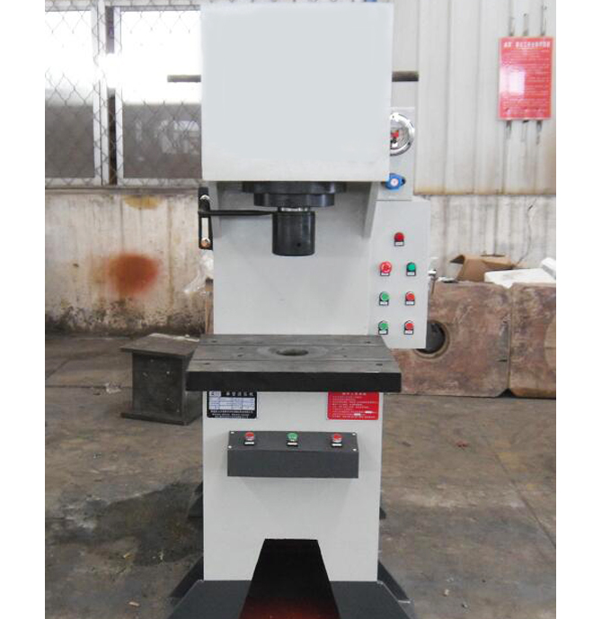 液壓機機身為“C”型單臂式結(jié)構(gòu),采用鋼板CO2保護焊接,焊接后通過回火時效處理,確保機身永不變形。液壓系統(tǒng)位于機身內(nèi),外形美觀,操作方便,利用三面空間可擴寬工作范圍。